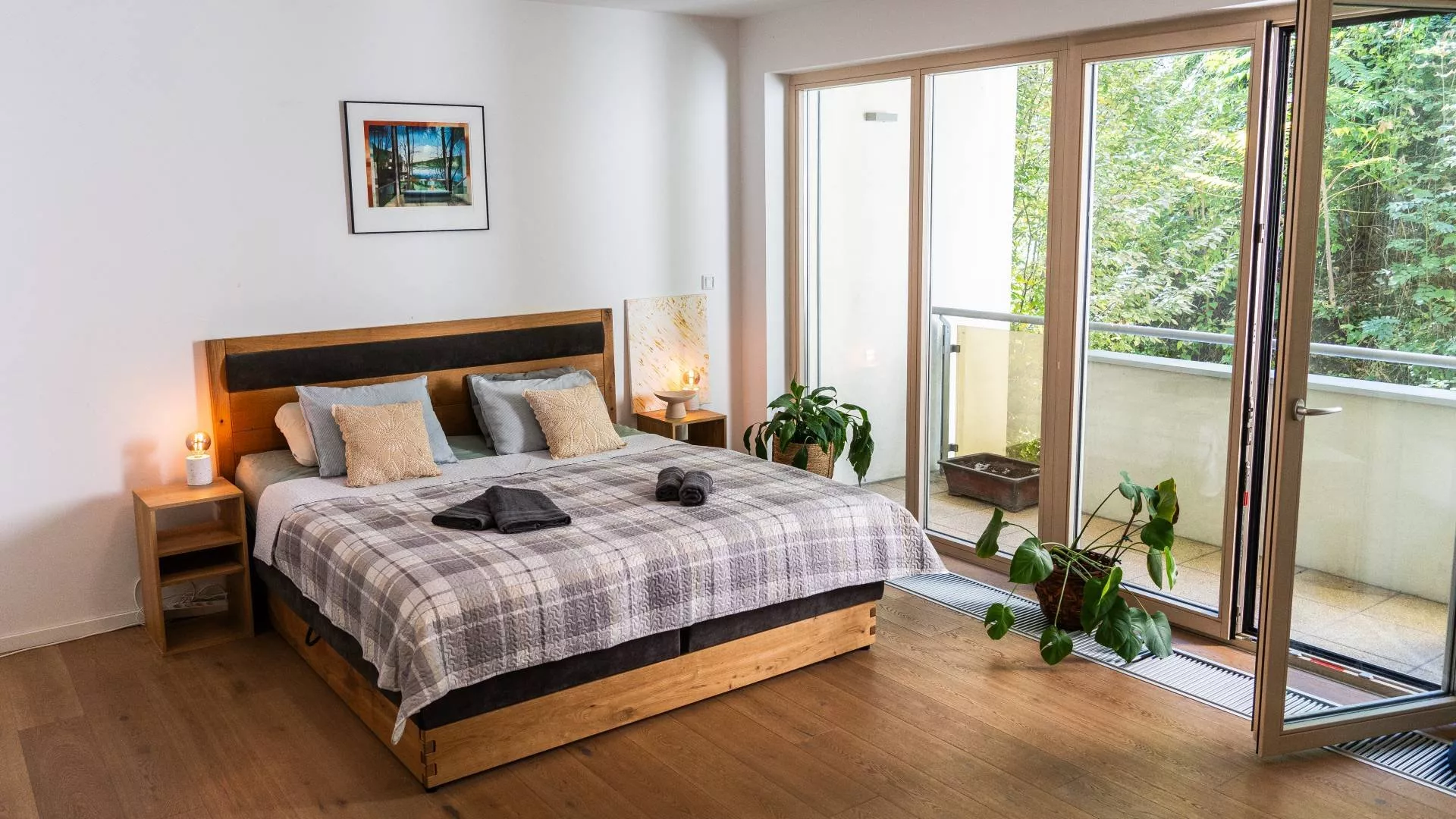 Dve zo spální ponúkajú priame prepojenie na balkón alebo loggiu a výhľad na stromy a zeleň, ktoré obklopujú Rezidenciu Hradný Vrch.