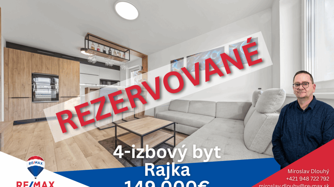 RE/MAX exkluzívne ponúka na predaj moderný 4-izbový byt v Rajke, nachádzajúci sa v novostavbe skolaudovanej pred 5 rokmi. Byt s výmerou 66 m² ponúka praktické dispozičné riešenie a krásny výhľad na otvorenú prírodu.