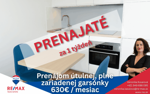 Realitná kancelária RE/MAX ponúka na prenájom modernú garsónku v novostavbe ...